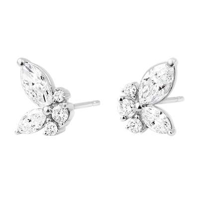 PASEO SOñADO N.º 6Pendientes cortos Mariposa - Oro blanco 9 quilates - Diamante de laboratorio ID : 7462