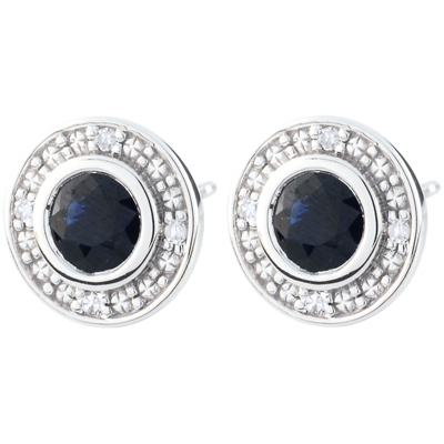 ABUNDANCIA N.º 13Pendientes cortos - Oro blanco 9 quilates - Zafiro azul ID : 2299