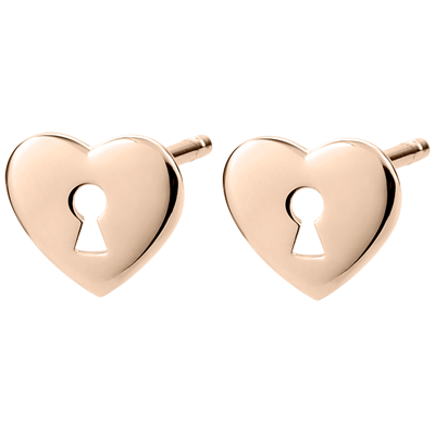 Les corazones en oro rosa, portadores en sus centros de una cerradura, estos pendientes representan perfectamente el símbolo de los secretos de amor.