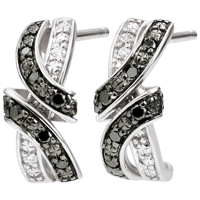 Metal en un movimiento fluido que nos hechiza bajo el brillo de los diamantes y pone de relieve el contraste del blanco del oro y el negro de los diamantes.