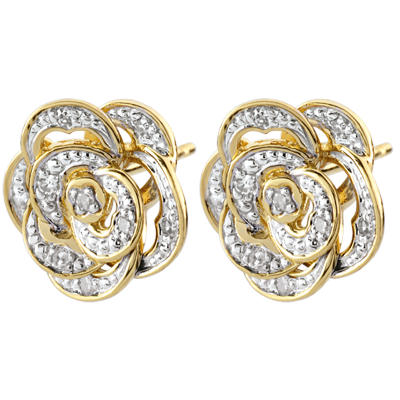 Un dúo de flores con pétalos repletos de diamantes relucen con gran elegancia.