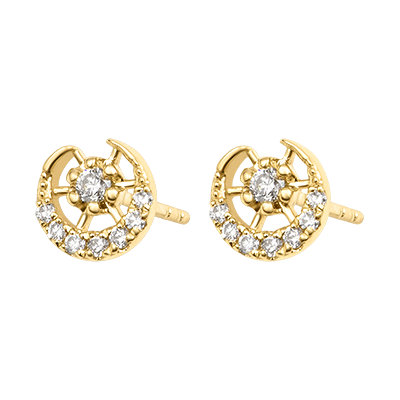 Cada pendiente está engastado con ocho diamantes brillantes que dibujan un círculo de luz alrededor de una piedra central.Una joya refinada e intemporal, perfecta para iluminar delicadamente cualquier look.