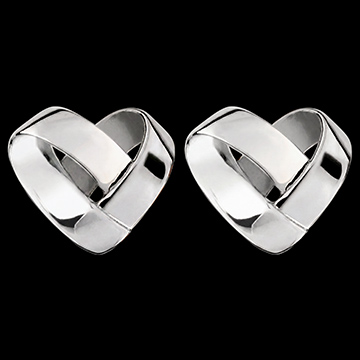 Pendientes tipo botón Corazón Plegado – oro blanco 9 quilates
