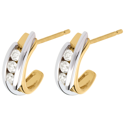 Un par de medias lunas asociada con la fuerza de una aleación de oro amarillo - oro blanco, para subrayar con delicadeza una trilogía diamantes.