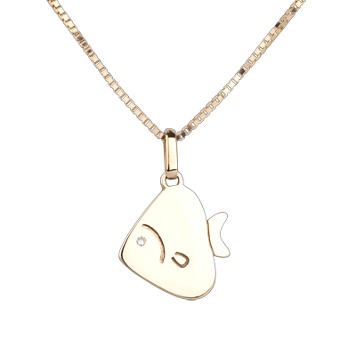 Un pequeño pez con lineas redondas y suaves : un querido acompañante. Oro amarillo y un diamante como ojito.