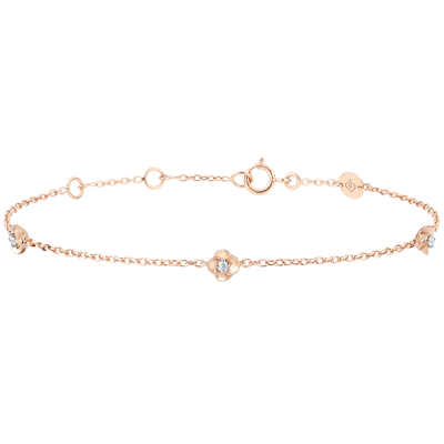 Una delicada pulsera de brillantes flores donde los pétalos se abren para descubrir un corazón de diamante. Esta pulsera de cadena es ideal para todos los días.