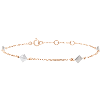 Inspirados por la forma de un diamante bruto, estas preciosas pirámides portan un diamante en una de sus facetas. Una pieza elegante y moderna. Pulsera de longitud ajustable: 18 cm, 17 cm, 16 cm. Motivo de 5 mm de largo y 5 mm de alto.
