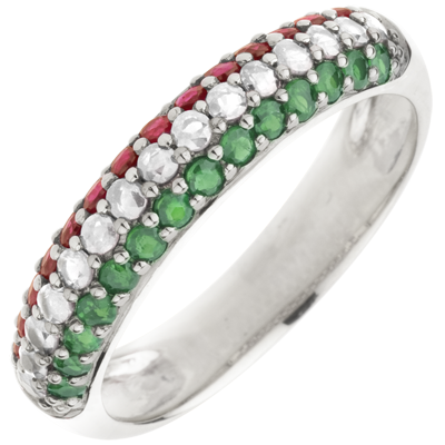 Anillo bandera italiana - oro blanco 9 quilates - diamante y piedras preciosas