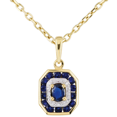 Un octógono de oro amarillo con incrustaciones de zafiros y de oro blanco presenta la forma del diamante. En el centro, un zafiro oval culmina el colgante. Una joya elgante e atemporal.