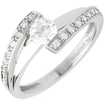19 diamantes: 0. 51 quilates de los cuales el Diamante central: 0. 37 quilates