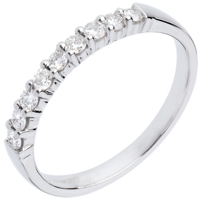 Alianza oro blanco semi empedrado - engaste garras - 0.25 quilates - 9 diamantes