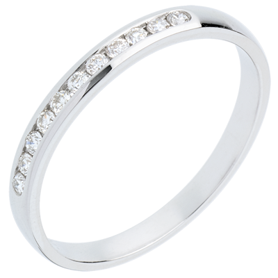 Alianza oro blanco semi empedrado - engaste raíl - 11 diamantes