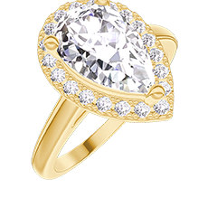 Anillo Oro amarillo 18 quilates - Diamante de laboratorio Pera 1 quilates - Halo Diamante de laboratorio