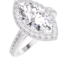 Anillo Oro blanco 9 quilates - Diamante Marquesa 1 quilates - Halo Diamante - Engastado Diamante