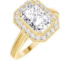 Anillo Oro amarillo 9 quilates - Diamante Rectángulo 1 quilates - Halo Diamante
