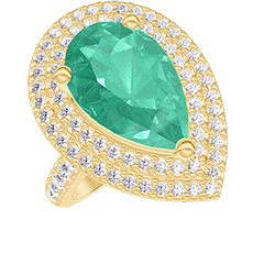 Anillo Oro amarillo 9 quilates - Esmeralda Pera 2 quilates - Halo Diamante - Engastado Diamante