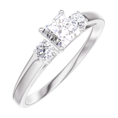 « L'ATELIER » N.º 160124Anillo Oro blanco 9 quilates - Diamante Princesa 0.3 quilates - Piedras laterales Diamante