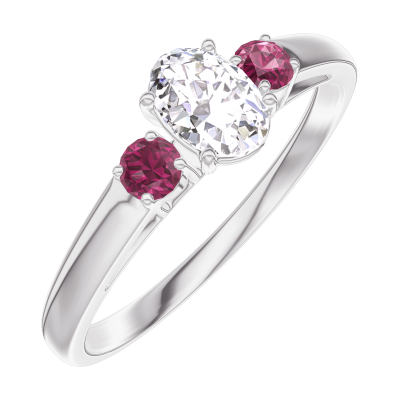 « L'ATELIER » Nº160343Anillo Oro blanco 18 quilates - Diamante Ovalo 0.3 quilates - Piedras laterales Rubí 5