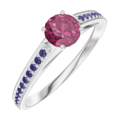 Anillo Oro blanco 18 quilates - Rubí redondo 0.3 quilates - Engastado Zafiro azul