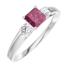 Anillo Oro blanco 9 quilates - Rubí Princesa 0.3 quilates - Piedras laterales Diamante