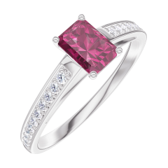 Anillo Oro blanco 9 quilates - Rubí Rectángulo 0.3 quilates - Engastado Diamante
