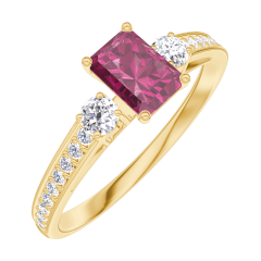 Anillo Oro amarillo 9 quilates - Rubí Rectángulo 0.3 quilates - Piedras laterales Diamante - Engastado Diamante