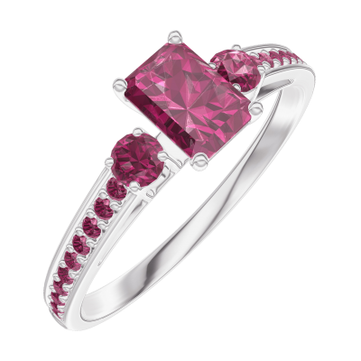 « L'ATELIER » Nº160851Anillo Oro blanco 18 quilates - Rubí Rectángulo 0.3 quilates - Piedras laterales Rubí - Engastado Rubí