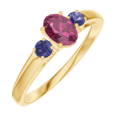 Anillo Oro amarillo 9 quilates - Rubí Ovalo 0.3 quilates - Piedras laterales Zafiro azul