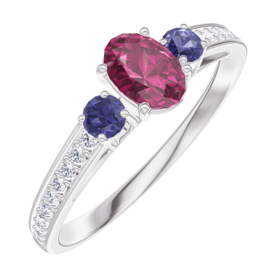 « L'ATELIER » Nº160968Anillo Oro blanco 9 quilates - Rubí Ovalo 0.3 quilates - Piedras laterales Zafiro azul - Engastado Diamante 5 (3)