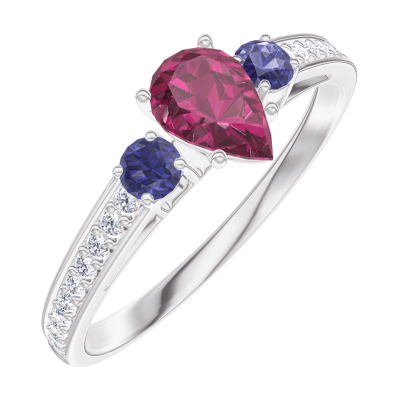 « L'ATELIER » Nº161067Anillo Oro blanco 18 quilates - Rubí Pera 0.3 quilates - Piedras laterales Zafiro azul - Engastado Diamante