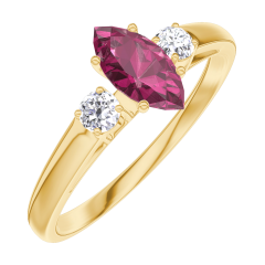 Anillo Oro amarillo 18 quilates - Rubí Marquesa 0.3 quilates - Piedras laterales Diamante