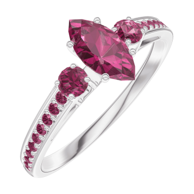 « L'ATELIER » Nº161151Anillo Oro blanco 18 quilates - Rubí Marquesa 0.3 quilates - Piedras laterales Rubí - Engastado Rubí