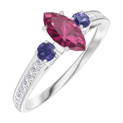 « L'ATELIER » Nº161167Anillo Oro blanco 18 quilates - Rubí Marquesa 0.3 quilates - Piedras laterales Zafiro azul - Engastado Diamante