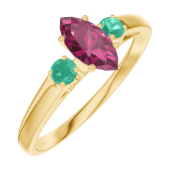 Anillo Oro amarillo 9 quilates - Rubí Marquesa 0.3 quilates - Piedras laterales Esmeralda