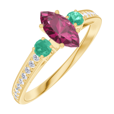 « L'ATELIER » N.º 161185Anillo Oro amarillo 18 quilates - Rubí Marquesa 0.3 quilates - Piedras laterales Esmeralda - Engastado Diamante