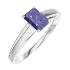 Anillo Oro blanco 18 quilates - Zafiro azul Rectángulo 0.3 quilates