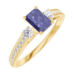 Anillo Oro amarillo 18 quilates - Zafiro azul Rectángulo 0.3 quilates - Piedras laterales Diamante - Engastado Diamante