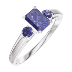 Anillo Oro blanco 9 quilates - Zafiro azul Rectángulo 0.3 quilates - Piedras laterales Zafiro azul
