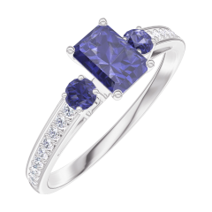 « L'ATELIER » N.º 161467Anillo Oro blanco 18 quilates - Zafiro azul Rectángulo 0.3 quilates - Piedras laterales Zafiro azul - Engastado Diamante