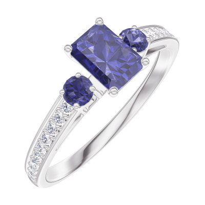 « L'ATELIER » Nº161467Anillo Oro blanco 18 quilates - Zafiro azul Rectángulo 0.3 quilates - Piedras laterales Zafiro azul - Engastado Diamante