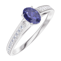 Anillo Oro blanco 9 quilates - Zafiro azul Ovalo 0.3 quilates - Engastado Diamante
