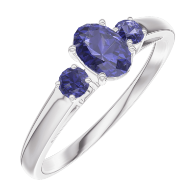 « L'ATELIER » Nº161564Anillo Oro blanco 9 quilates - Zafiro azul Ovalo 0.3 quilates - Piedras laterales Zafiro azul 5
