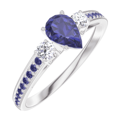 Anillo Oro blanco 18 quilates - Zafiro azul Pera 0.3 quilates - Piedras laterales Diamante - Engastado Zafiro azul