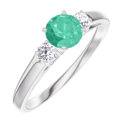 Anillo Oro blanco 9 quilates - Esmeralda redondo 0.3 quilates - Piedras laterales Diamante