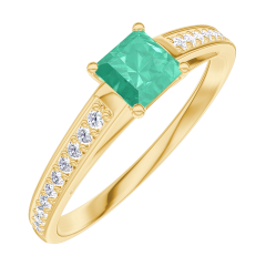 Anillo Oro amarillo 9 quilates - Esmeralda Princesa 0.3 quilates - Engastado Diamante