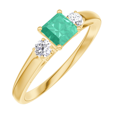 « L'ATELIER » Nº161922Anillo Oro amarillo 9 quilates - Esmeralda Princesa 0.3 quilates - Piedras laterales Diamante