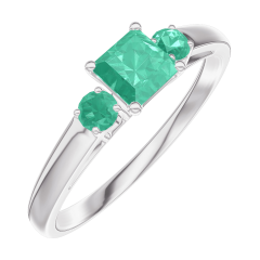 Anillo Oro blanco 18 quilates - Esmeralda Princesa 0.3 quilates - Piedras laterales Esmeralda