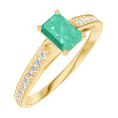 Anillo Oro amarillo 9 quilates - Esmeralda Rectángulo 0.3 quilates - Engastado Diamante