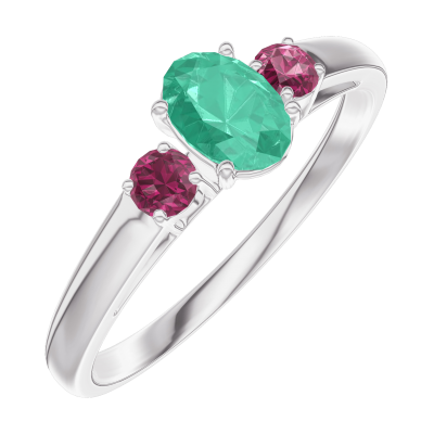 « L'ATELIER » Nº162144Anillo Oro blanco 9 quilates - Esmeralda Ovalo 0.3 quilates - Piedras laterales Rubí 5 (3)