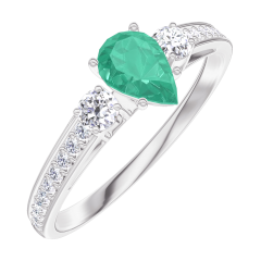 Anillo Oro blanco 18 quilates - Esmeralda Pera 0.3 quilates - Piedras laterales Diamante - Engastado Diamante